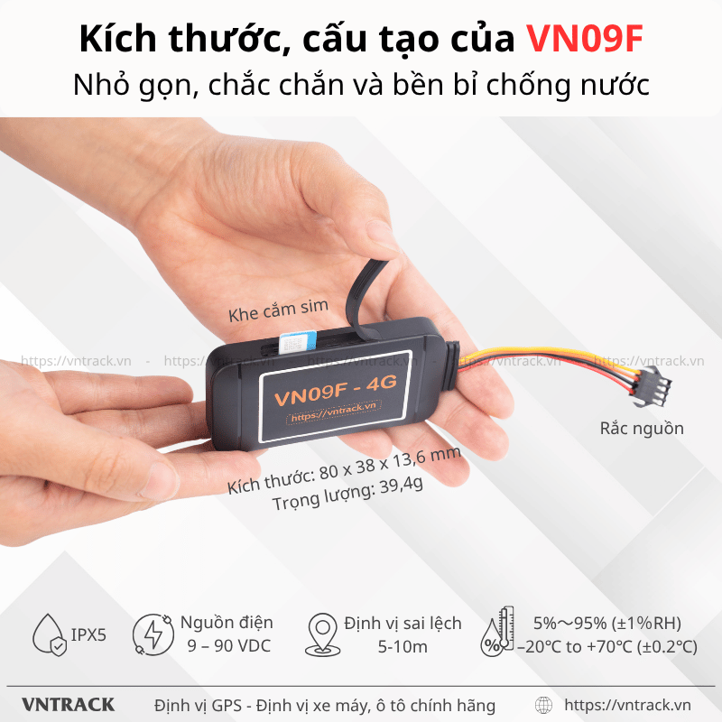 VN09F là mẫu định vị 4G thế hệ mới, hoạt động ổn định và cho khả năng theo dõi vị trí chính xác theo thời gian thực.