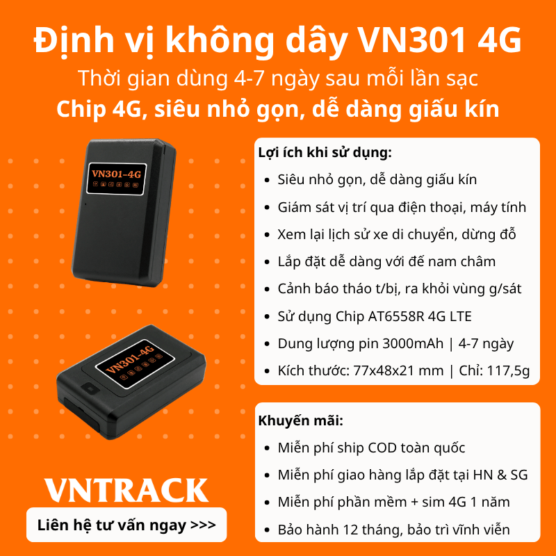 VN03E – Thiết bị định vị không dây từ tính, pin bền vượt trội